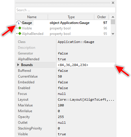 Once added to the component, you can freely move the Gauge instance, or you simply grab one of its corners and resize it in this way. You can control the position and the size of the component also by directly modifying its property Bounds. If you want the Gauge to appear behind other views you can reorder it explicitly.