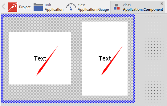 Component templates are intended to create widgets which can be adapted and enhanced to your particular design expectations. For this purpose, once you have added a new Gauge component to your project, you can open the component class for editing. Thereupon the implementation of the component appears in a new Composer page: