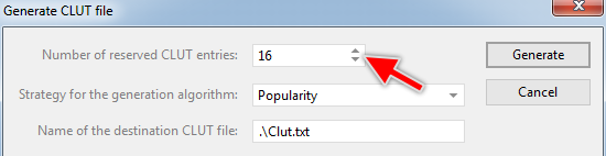 ★To specify the number of reserved CLUT entries click on the small triangle icons