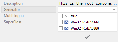 Please note, the Generator attribute can't be modified if the member is inherited from a base class. In case of a member derived as variant from another member, the attribute Generator is not available.