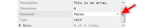 To inspect or modify the value of an Generator attribute, select first the affected member. Thereupon, the attribute is listed in the middle area of Inspector. Please note the available assistant you can activate by clicking on the button