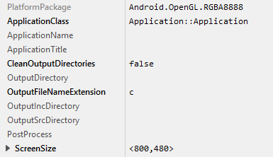 ★The attribute PlatformPackage should refer to the Android OpenGL Platform Package.