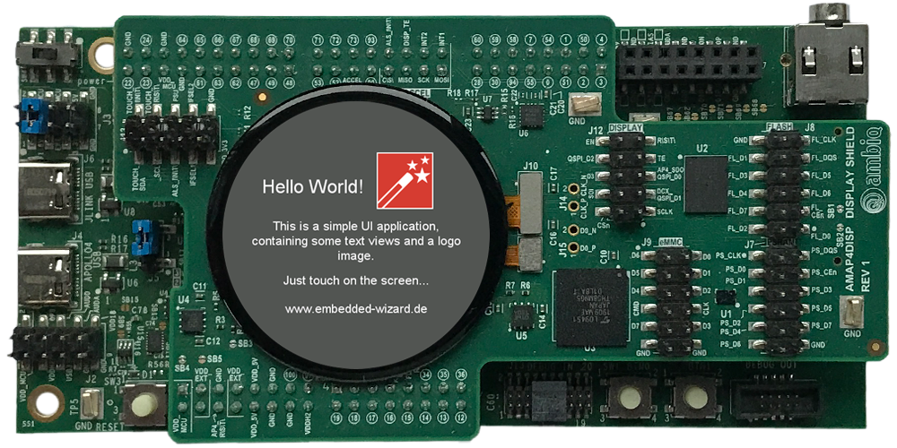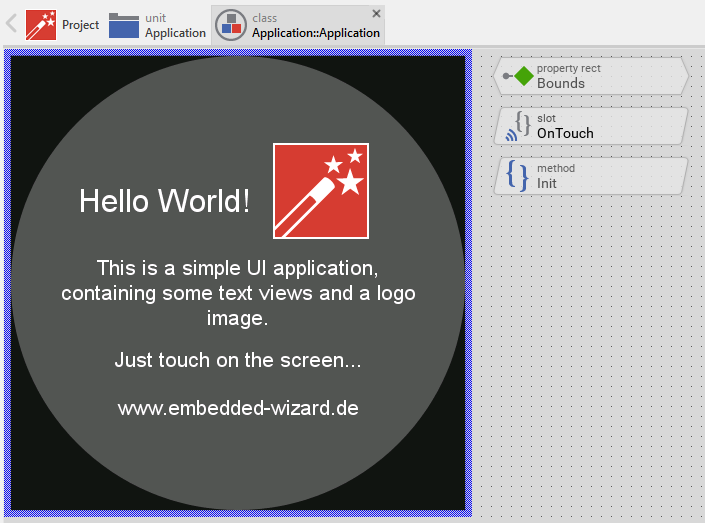 Example 'HelloWorld' within Embedded Wizard Studio.