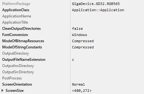 As a result you get a new Embedded Wizard project, that contains the necessary Profile attributes suitable for the GD32F470 Evalboard: