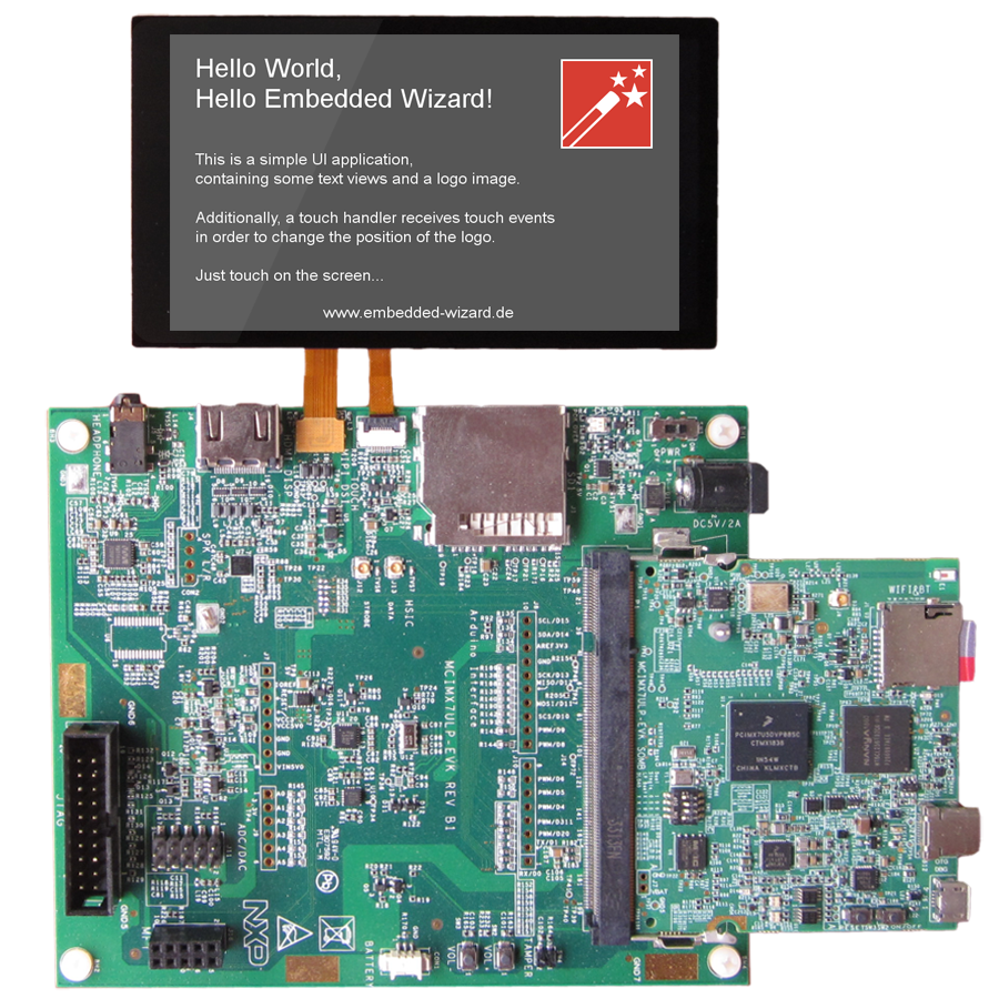 The following article explains all necessary steps to create an Embedded Wizard UI application for i.MX 7 using OpenGL ES 2.0 and Wayland. The Embedded Wizard GUI applications are executable on i.MX 7 reference platforms, containing one of the following i.MX 7 application processors: