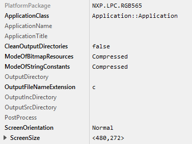 ★The attributes ModeOfBitmapResources and ModeOfStringConstants can be set to DirectAccess in case that the resources should be taken directly from flash memory. By default these attributes are set to Compressed.