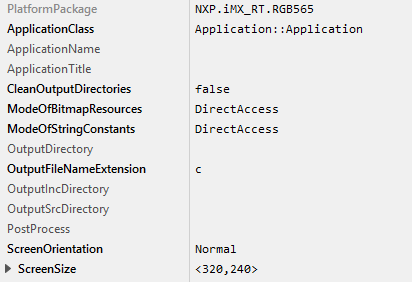 ★The attribute PlatformPackage should refer to the iMX_RT Platform Package. Please note, that for i.MX RT1010 only the color formats RGB565, Index8 or LumA44 can be used.