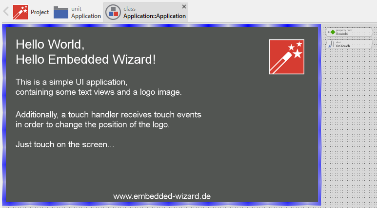 Example 'HelloWorld' within Embedded Wizard Studio.