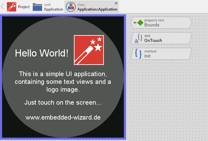 Example 'HelloWorld' within Embedded Wizard Studio.