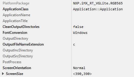 ★Screen size - If the size of your display is different compared to the display of the MIMXRT595-EVK development board (390x390 pixel), please adapt the attribute ScreenSize of the UI project and the size of the framebuffer within the file ewconfig.h accordingly.