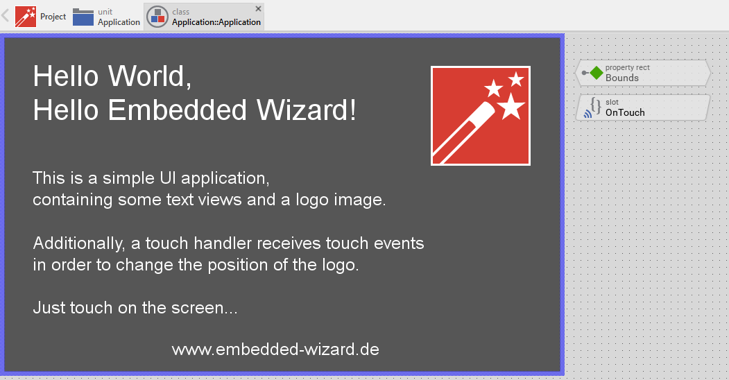 Example 'HelloWorld' within Embedded Wizard Studio.
