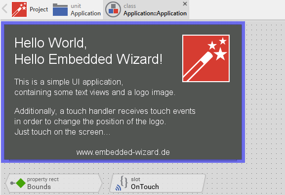 Example 'HelloWorld' within Embedded Wizard Studio.