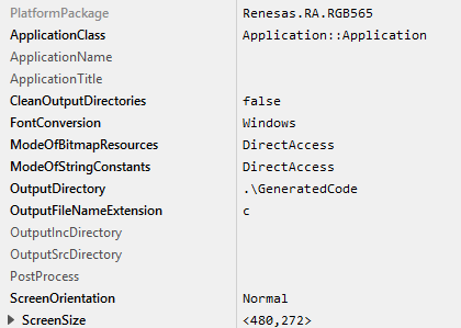 ★The attributes ModeOfBitmapResources and ModeOfStringConstants should be set to DirectAccess. This ensures that resources are taken directly from flash memory.