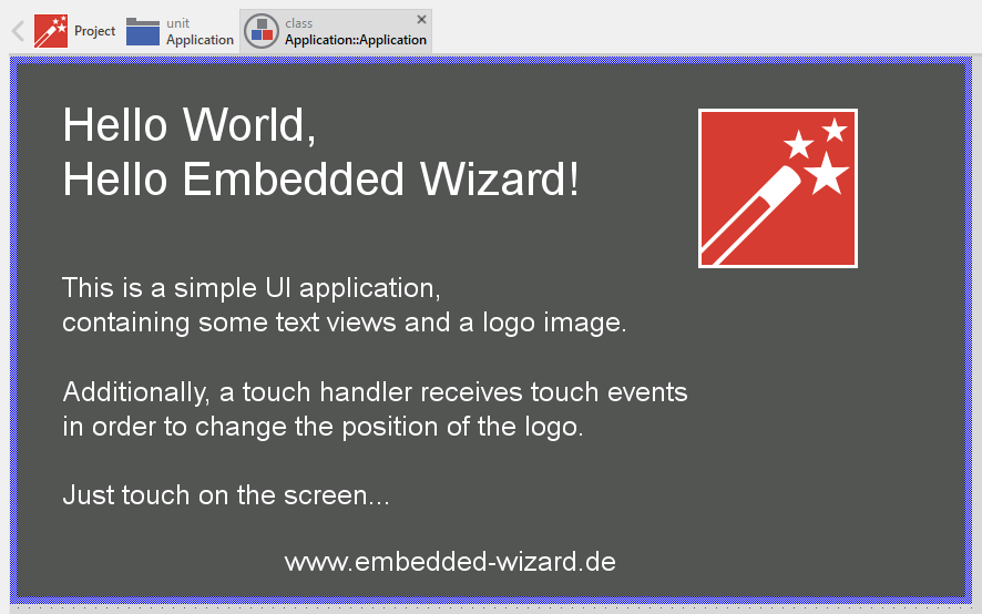 Example 'HelloWorld' within Embedded Wizard Studio.