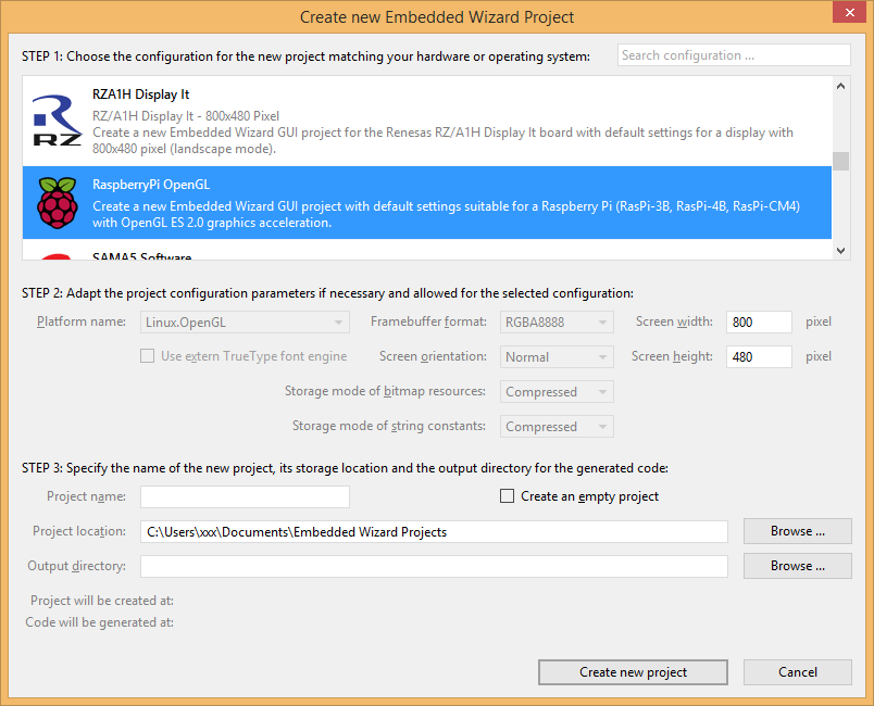 In order to create your own UI project suitable for the Raspberry Pi target, you can create a new project and select the Raspberry Pi OpenGL project template: