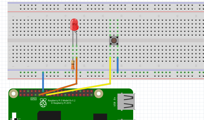 The LED is connected to GPIO 17 - the button is connected to GPIO 22.
