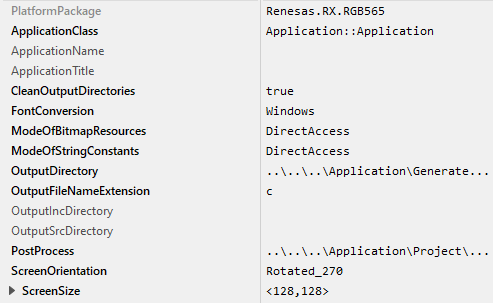 ★Screen size - If the size of your display is different compared to the display of the RX261 Evaluation Kit (128x128 pixel), please adapt the attribute ScreenSize of the UI project and the size of the framebuffer within the file ewconfig.h accordingly.