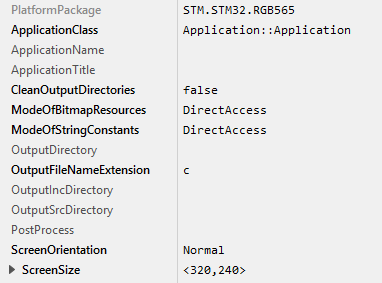 ★The attributes ModeOfBitmapResources and ModeOfStringConstants should be set to DirectAccess. This ensures that resources are taken directly from flash memory.