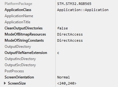 ★The attributes ModeOfBitmapResources and ModeOfStringConstants should be set to DirectAccess. This ensures that the resources are taken directly from flash memory.