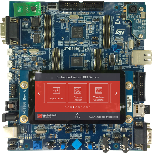 The following article explains all necessary steps to create an Embedded Wizard UI application suitable for the STM32F469 Evalboard (STM32469I-EVAL) from STMicroelectronics.