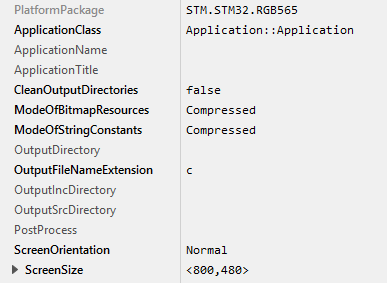 ★The attributes ModeOfBitmapResources and ModeOfStringConstants can be set to DirectAccess in case that the resources should be taken directly from flash memory. By default these attributes are set to Compressed.