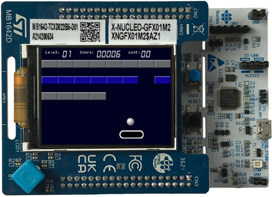 STM32G070 Nucleo board (NUCLEO-G070RB) and X-NUCLEO-GFX01M2 display expansion board.