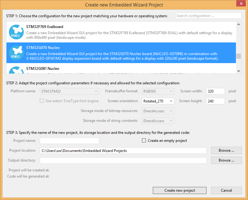 The following article explains all necessary steps to create an Embedded Wizard UI application suitable for the STM32G070 Nucleo board (NUCLEO-G070RB) with X-NUCLEO-GFX01M2 display expansion board from STMicroelectronics.