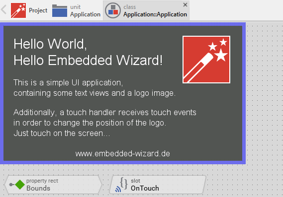 Example 'HelloWorld' within Embedded Wizard Studio.