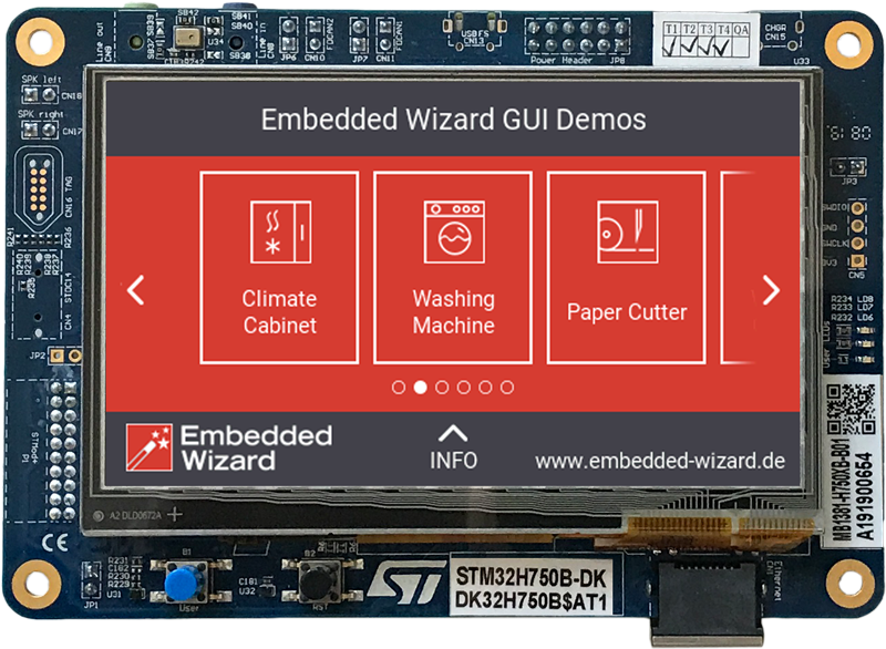 The following article explains all necessary steps to create an Embedded Wizard UI application suitable for the STM32H750 Discovery board (STM32H750B-DK) from STMicroelectronics.