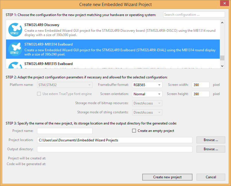 The following article explains all necessary steps to create an Embedded Wizard UI application suitable for the STM32L4R9 Evalboard (STM32L4R9I-EVAL) with MB1314 display from STMicroelectronics.