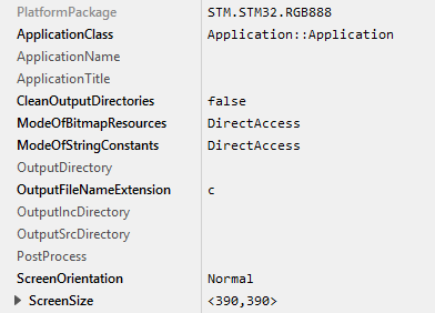 ★The attributes ModeOfBitmapResources and ModeOfStringConstants should be set to DirectAccess. This ensures that the resources are taken directly from flash memory.