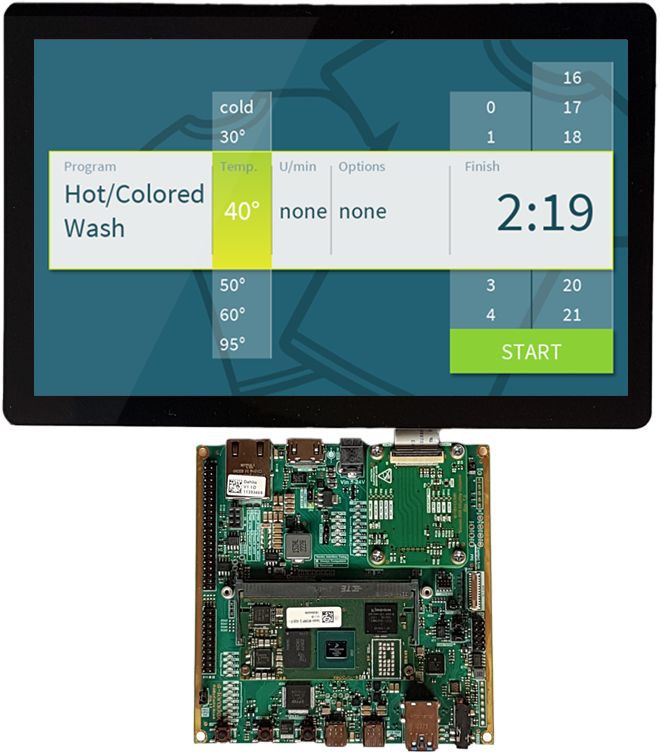 ★After the Embedded Wizard application and the docker container with this application is build, it is deployed locally to the connected device. It starts automatically.