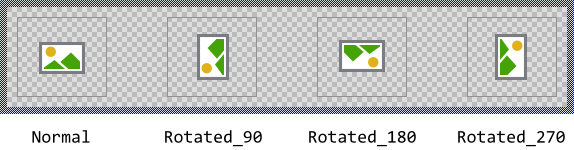 With the property Orientation you can determine the rotation of the image of the associated component in steps of 90 degrees (0, 90, 180 and 270 degrees). The following figure demonstrates how the initialization of the property Orientation affects the image layout (the gray borders indicate the view areas):