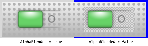 Per default the views appear alpha-blended over the contents lying behind them unless you explicitly disable this mode by setting the property AlphaBlended to the value false. In such case, the component image will overwrite the contents in the background. For example: