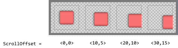 Besides the possibility to align the displayed component image within a Group view you can also scroll it pixel-wise. For this purpose use the property ScrollOffset. You can determine the vertical and the horizontal displacement individually. With positive values the image is scrolled right/down. With negative values left/up. For example (the gray borders visualize the view areas):