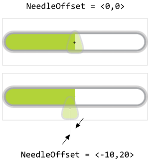 Unless it was explicitly configured, the center of the needle and the position where the both tracks join together do match. In other words, the needle appears vertically centered at the tracks join position. By using the property NeedleOffset an additional displacement for the needle can be configured. The displacement is useful, for example, to correctly adjust the needle position: