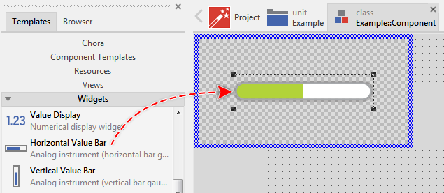 To add a new Horizontal Value Bar widget just at the design time of a GUI component do following: