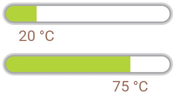 // Get the current position of the needle and arrange the Text view just below centered // horizontally and separated by a margin of 30 pixel. TemperatureLabel.Bounds.origin = TemperatureBar.GetNeedlePosition() + point( -TemperatureLabel.Bounds.w / 2, 30 ); // If you want, you can also adapt the text to be displayed in the view depending // on the current value of the associated widget. TemperatureLabel.String = string( TemperatureBar.CurrentValue ) + " °C";