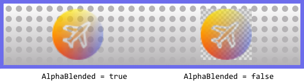 Per default the views appear alpha-blended over the contents lying behind them unless you explicitly disable this mode by setting the property AlphaBlended to the value false. In such case, the image will overwrite the contents in the background. For example: