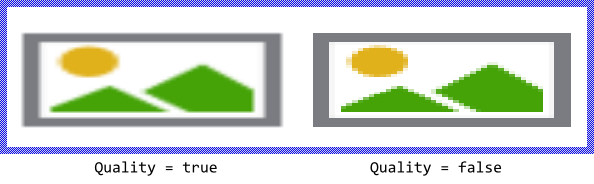 The usage of the bilinear filter is controlled by the property Quality. Per default the filter is enabled. By initializing Quality with the value false you can deactivate it again. The following figure demonstrates the results depending on the current setting of the property:
