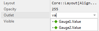 The following example demonstrates this technique. It contains two components: a slider component and a gauge component. The components are connected together through the here described property reference technique. There is no intermediate code necessary: