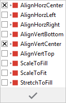If the affected property or attribute accepts multiple options to select simultaneously, the Assistant displays the available options in a check box list. For example, activating the Assistant for a property of user defined set type will cause the Assistant to show all items defined within this set: