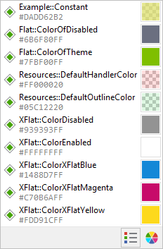 The handling with the color constants view is exact the same as described in List Assistant section. In particular, you can navigate in the list and select the convenient suggestion.