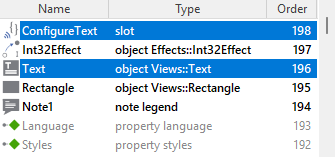 The order in which the project members are converted in code for the target system and eventually initialized at the runtime. This column determines also the stacking order (the Z-order) of graphical project members (members displayed within the canvas area). Members having higher order do overlay other remaining members with lower order. |
