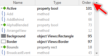 When working with Embedded Wizard Studio, the resulting succession of how members are initialized and converted in code for the target system is determined by the respective stacking order. Generally, members having lower order are initialized and generated before all other remaining members with higher order. The actual order of a member can be verified in the column Order of the members area. If necessary, you can restack the members: