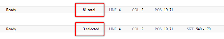 Since Inspector and Composer windows are coupled together, selecting members within the Inspector affects implicitly the selection in Composer window and vice versa. Also please note, that the total number of existing project members as well as the number of currently selected members is displayed in a dedicated pane of the Status bar:
