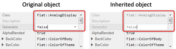 Similarly, the values in the right column are displayed with black or gray colors depending on whether it is permitted to modify them or not. This affects particularly attributes, which can be specified only in the original definition of a member. For example, the attribute Class determines the identity of an object member. This, in turn, applies not only to the object itself, but also to all objects derived from it. Changing this attribute retrospectively when you edit an inherited object is thus not possible. Similar occurs with the attribute Generator. Such attributes can be inspected only:
