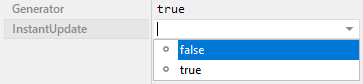 To inspect or modify the value of an InstantUpdate attribute, select first the affected style member. Thereupon, the attribute is listed in the middle area of Inspector. Please note the available assistant you can activate by clicking on the button