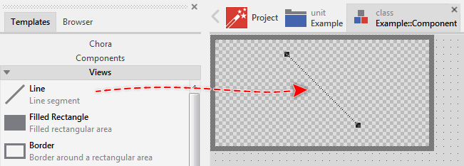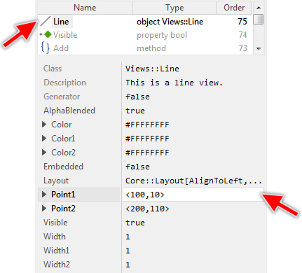 Once added, you can freely move the Line view, or you just grab one of its both end points and resize it in this way. You can control the position of the view also by directly modifying its properties Point1 and Point2. If you want the Line view to appear behind other views you can reorder it explicitly.