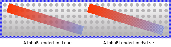 The visibility of the Line view is controlled primarily by the property Visible and the specified color values. Per default the stroked line segments appear alpha-blended over the contents lying behind them unless you explicitly disable this mode by setting the property AlphaBlended to the value false. In such case, the line will overwrite the contents in the background. For example: